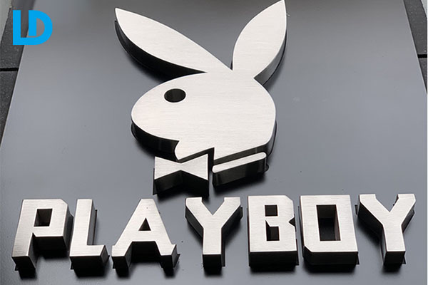 - 3D logo on wall. Brushed silver stainless steel three dimensional 3d lettering for business name display with wholesale price.