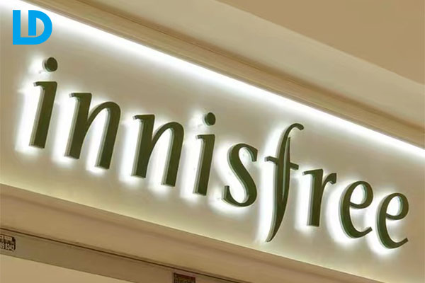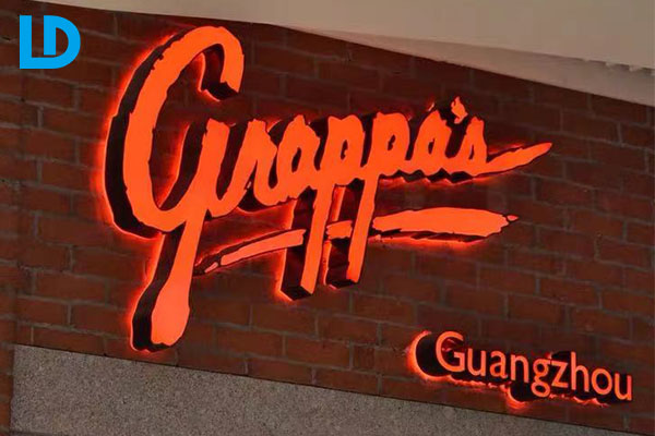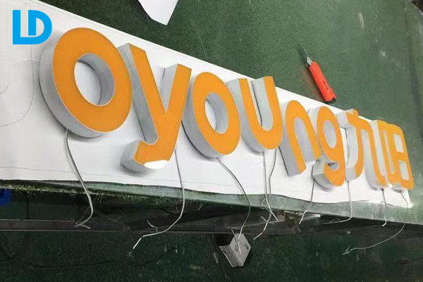 - Led letter board. Front and back lit built up acrylic letters on wall, can make different color for the front and back side.