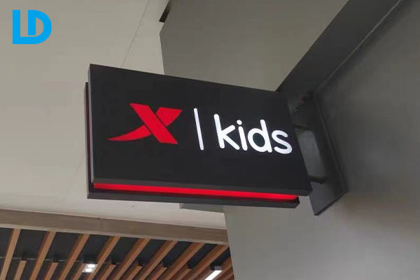 • Projecting shop signs. Custom five sided led illuminated light box signage for wall, custom print logo on the face, using white color led lighting.