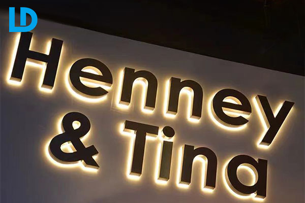 • Custom exterior signs, wall mounted stainless steel backlit channel letter signage board for business, custom embed warm color lighting.