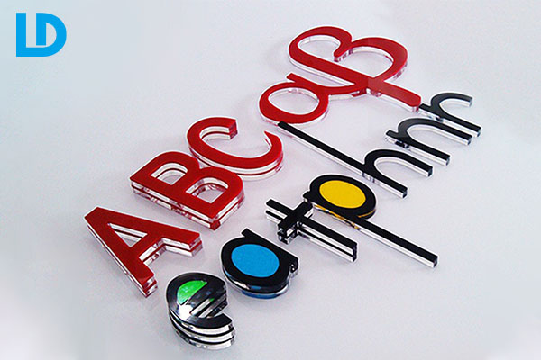 - 3D sign letters. Three dimensional acrylic channel letter signage board, also named push through sign with front and side lit lighting.