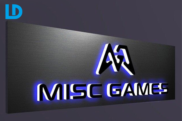 • Outside signs for business. Brushed silver stainless steel metal backlit letters and logos on wall, ideal for office lobby signage.